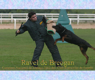 Campeón Nacional de Trabajo del C.R.E. 2.003 y 4º Clasificado en el European Championship IPO for Rottweiler 2003 (97-94-94)